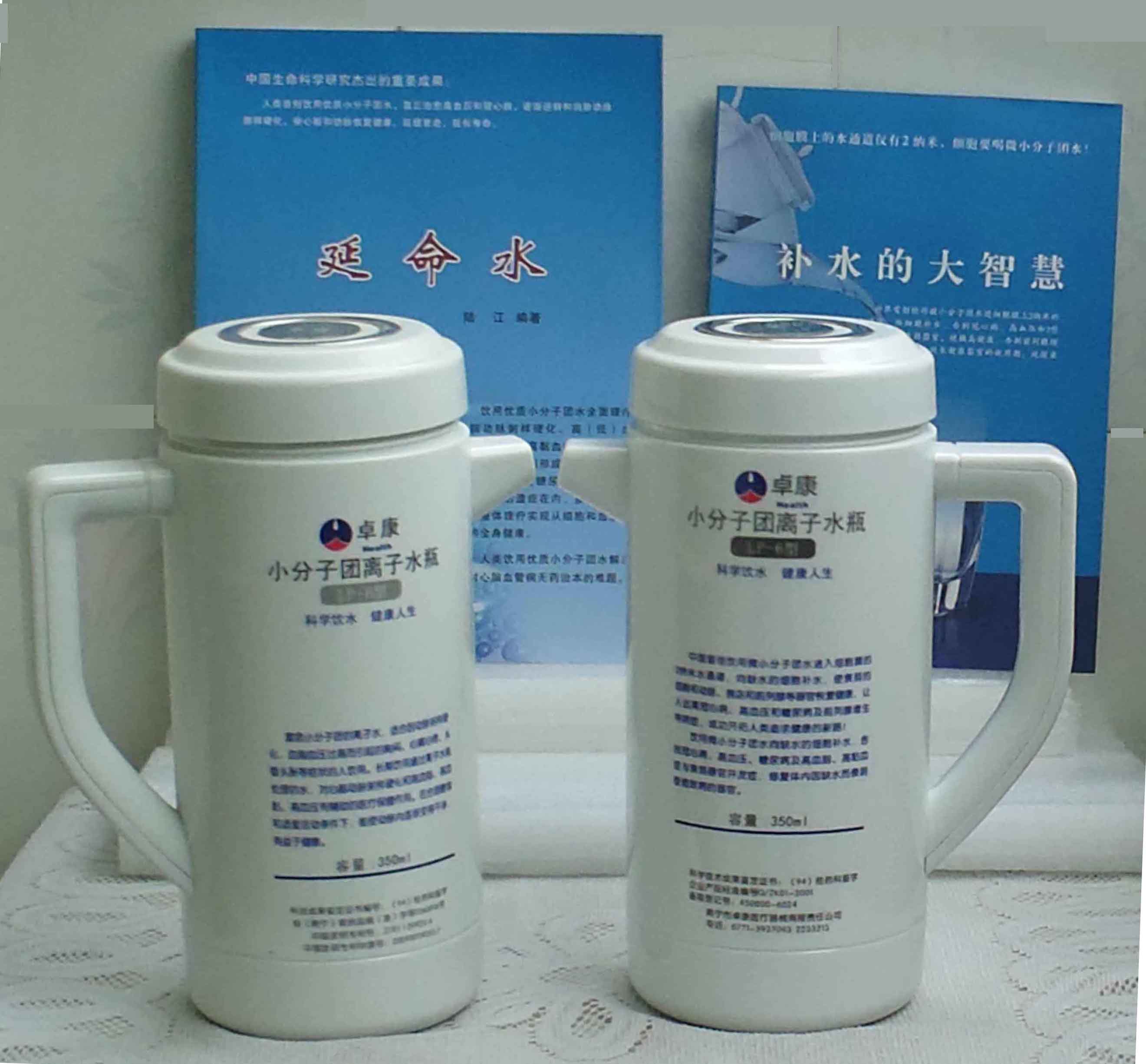 本品大量用戶的使用效果表明,能治愈冠心病、腦動(dòng)脈硬化、原發(fā)性高(低)血壓、高血脂、高粘血癥、高血尿酸癥(痛風(fēng))和2型糖尿病、衰弱器官并發(fā)癥(前列腺增生、腎衰與尿毒癥)及中風(fēng)后遺癥等療效好。產(chǎn)品配信譽(yù)卡。使用壽命30年,不換芯,易清洗。團(tuán)購優(yōu)惠。從郵局匯款,匯費(fèi)1%,地址按本頁下方地址、聯(lián)系人寫。從銀行匯款,請點(diǎn)擊[聯(lián)系匯款]欄,從工商銀行匯款,建設(shè)銀行、農(nóng)業(yè)銀行匯款,均免收匯費(fèi),匯款后20--30分鐘內(nèi)發(fā)短信,可用微信轉(zhuǎn)帳,均免匯費(fèi),微信號(hào)即手機(jī)號(hào)13768308380。匯款后,告知你的姓名和地址,我公司聯(lián)系人手機(jī)號(hào)是:13768308380。卓康牌離子水瓶為我公司獨(dú)家生產(chǎn),郵購產(chǎn)品配《補(bǔ)水的大智慧》彩印書一本,另配四季出版社出版的新書《補(bǔ)水的大智慧》一本,并配光盤一張(含央視主持人釆訪陸江的對(duì)話視頻)。目前市場和"淘寶網(wǎng)"上有人兜售假冒的偽品,望讀者審察辯別真?zhèn)?,造假者剽竊假冒本公司的各種認(rèn)證、獲獎(jiǎng)獎(jiǎng)項(xiàng)、專利號(hào)和外包裝盒上的中英文字,包括科技成果的鑒定意見等,請讀者注意防偽。如何識(shí)別假貨?已經(jīng)買了假貨怎么辦?(請點(diǎn)擊[打假掠影][打假掠影])。